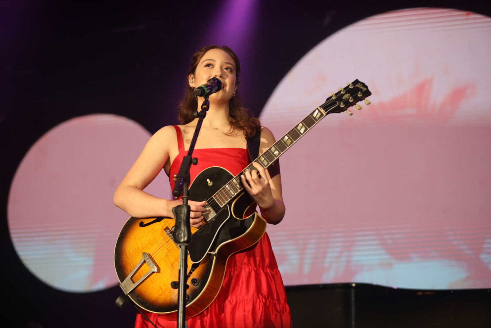 Laufey membuka penampilan di hari kedua BNI Java Jazz Festival dengan gaun merahnya yang anggun, sambil memainkan lagu “While You Were Sleeping.” Para penonton terpikat dengan harmoni indah dan emosi yang terpancar di setiap lirik yang dilantunkan.